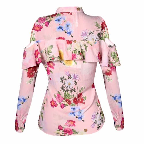 Buy Floral Chiffon Cold Shoulder Long Sleeve Shirt - Pink in Nigeria