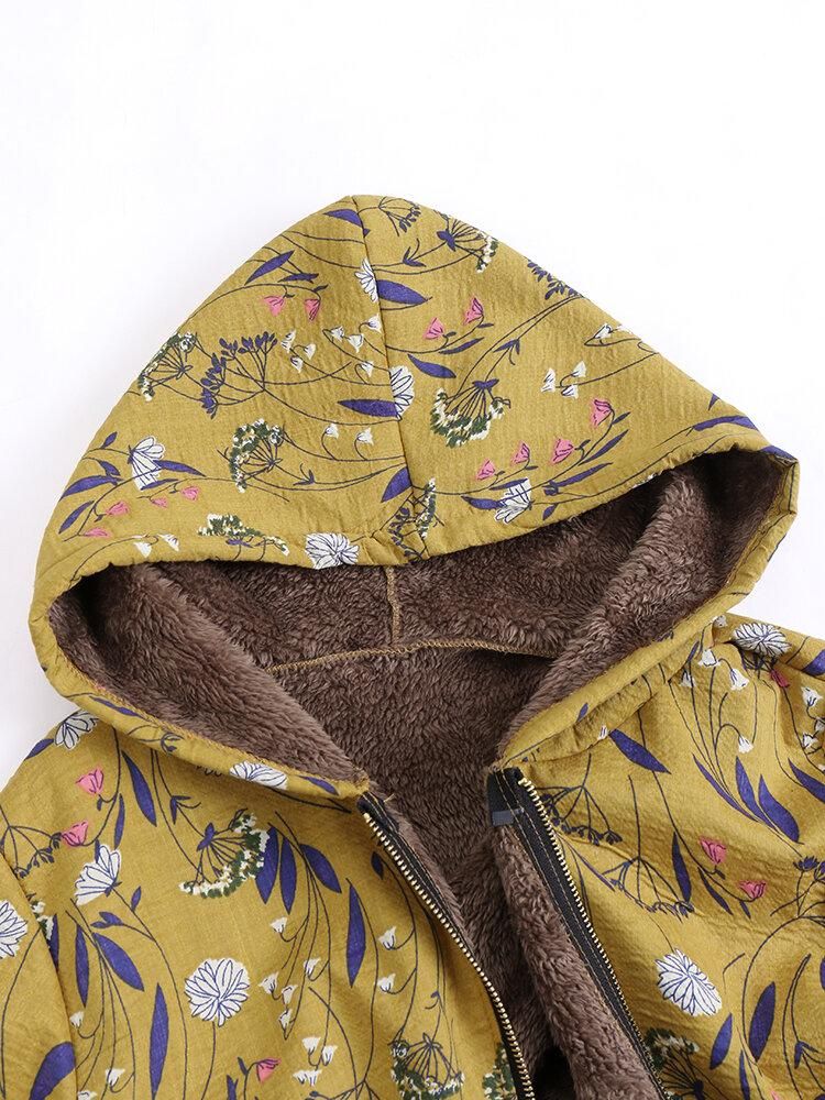 Buy Floral Print Hooded Long Sleeve Pockets Vintage Jacket Coats in Nigeria