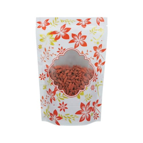 These flower red and white resealable pouches can protect the contents from dirt and moisture / water while giving your product an beautiful showcase.