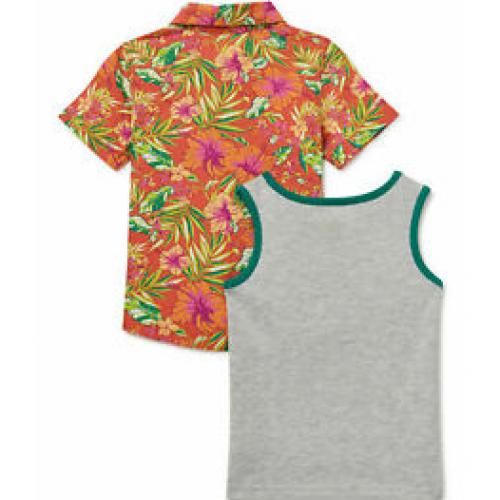Wonder nation boys 2pc floral shirt and tank top set is made from cotton and the floral print makes it eye catching .this beauty of this shirt is that it can be worn on a pant and jeans while the tank can be worn on shorts its surely a two for one buy.