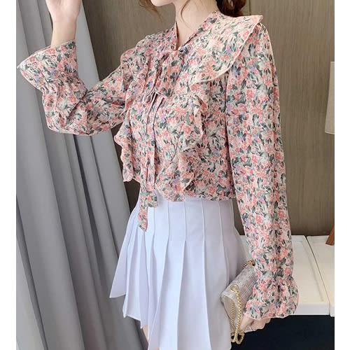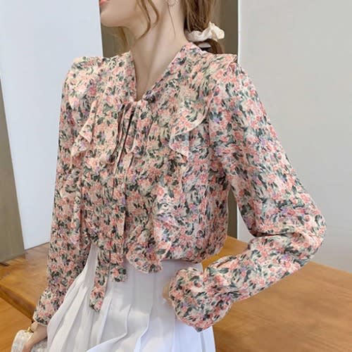 Buy Floral Side Frill Blouse - Pink in Nigeria