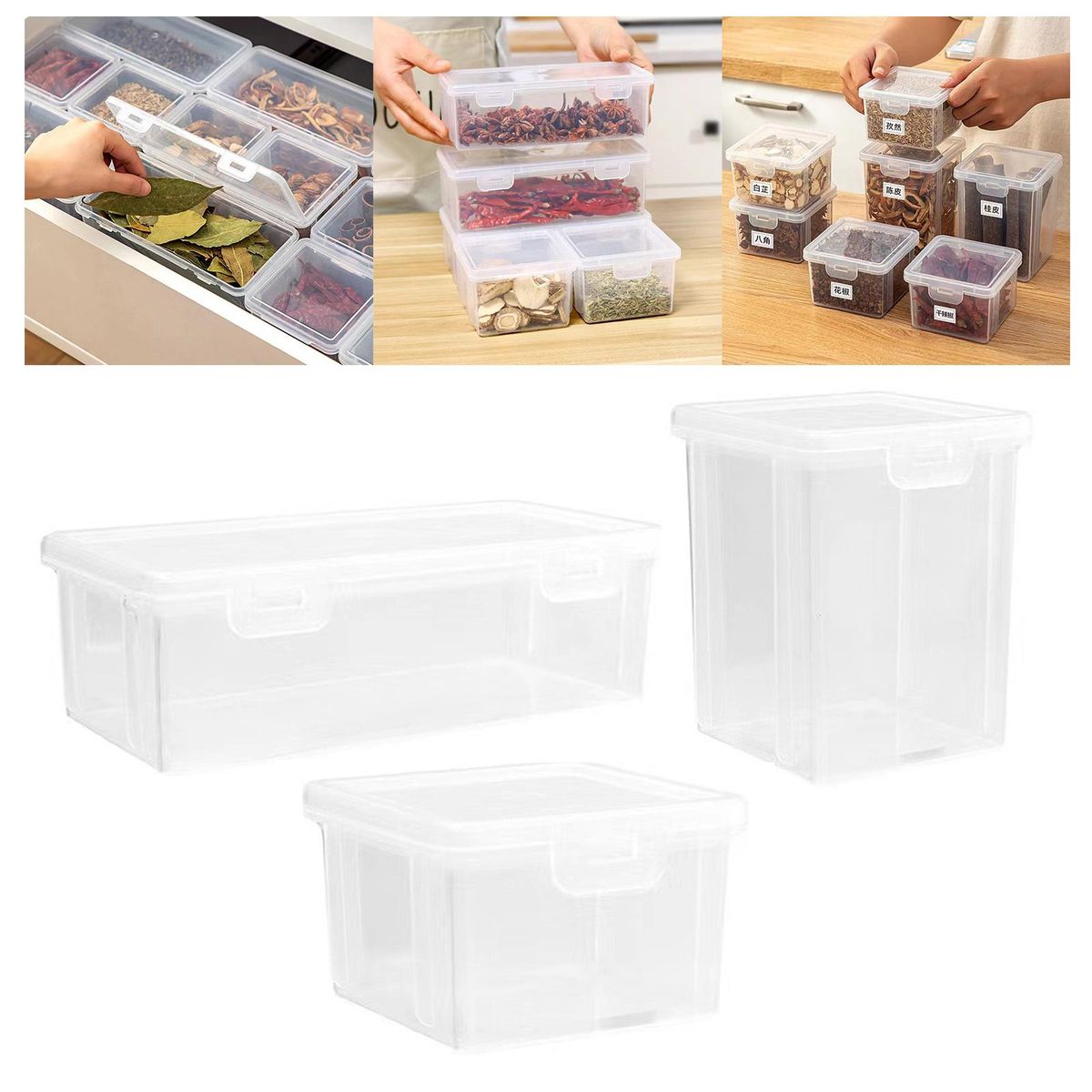 Seasoning Boxes;Kitchen Transparent Seasoning Box with Lid;Clear Storage Container Pantry Organization;Condiment Seasoning Storage Container for Spice;Fridge Storage Organizer Box Sugar Container;air tight containers for food baking containers