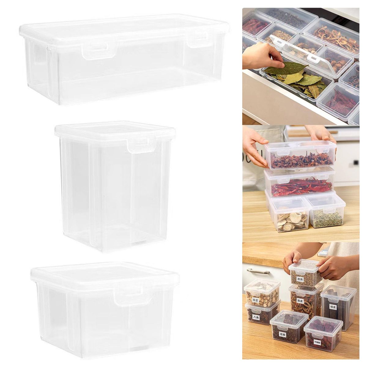 Seasoning Boxes;Kitchen Transparent Seasoning Box with Lid;Clear Storage Container Pantry Organization;Condiment Seasoning Storage Container for Spice;Fridge Storage Organizer Box Sugar Container;air tight containers for food baking containers