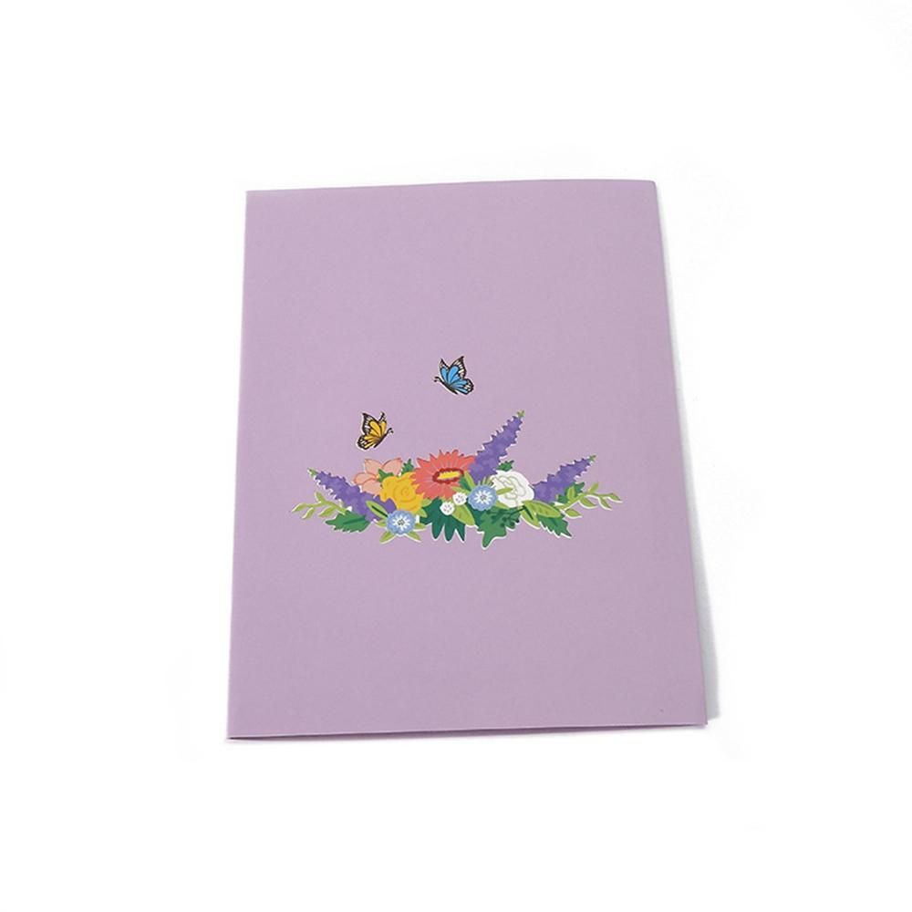 CREATE A ELEGANT MOMENT - The card is flat when folded, the recipient will be amazed when they open the card and the delicate flower basket right off the page. The basket was filled with roses, herbs, lupines and lavender, while butterflies perched on the flowers. The cover of this greeting card features an illustration of some butterflies hovering with the lovely flower bundle.
