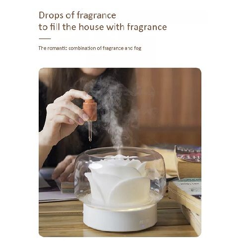 This Ultrasonic Aroma Diffuser gently lifts the scent of your favorite essential oils into the air to transform the mood of your spaceDelivers a fine mist of natural aroma to enhance your moodFlower-shaped designpamper yourself and ease stress400ml