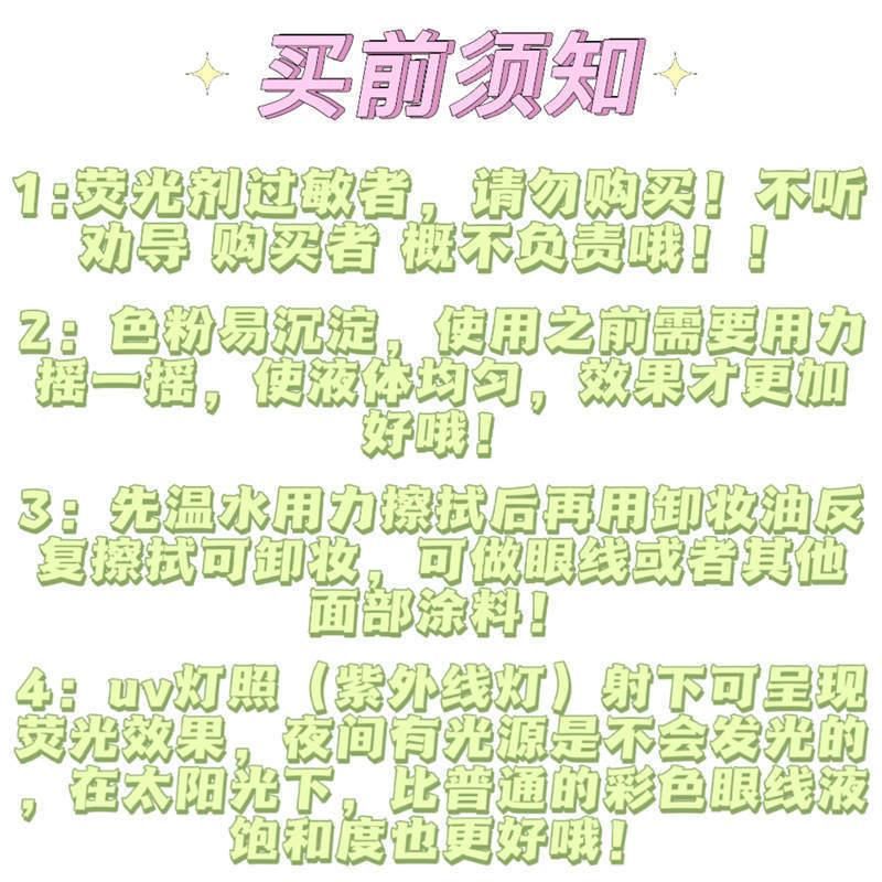 Color: Liquid Eyeliner 01# Pure White, Liquid Eyeliner 02# Lemon Yellow, Liquid Eyeliner 03# Fluorescent Green, Liquid Eyeliner 04# Bright Orange, Liquid Eyeliner 05# Rose Red, Liquid Eyeliner 06# Fluorescent Powder, Liquid Eyeliner 07# Charming Purple, liquid Eyeliner 08# Sky Blue