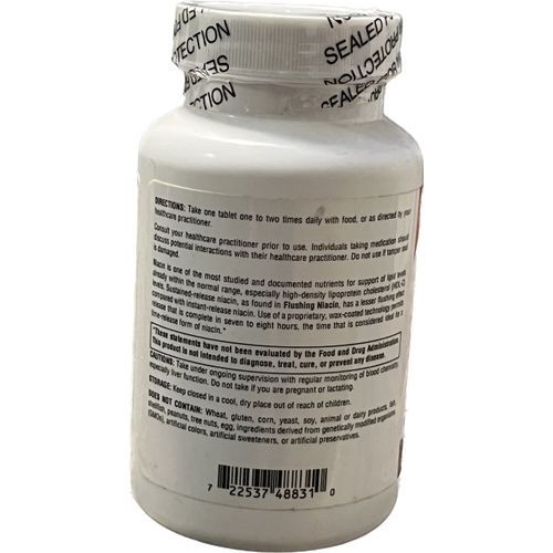 Sustained-Release Niacin Niacin is one of the most studied and documented nutrients for support of lipid levels already within the normal range, especially high-density lipoprotein cholesterol (HDL-C) levels. Sustained-release niacin, as found in Flushing Niacin, has a lesser flushing effect compared with instant-release niacin. Use of a proprietary, wax-coated technology permits release that is complete in seven to eight hours, the time that is considered ideal for a time-release form of niacin.*