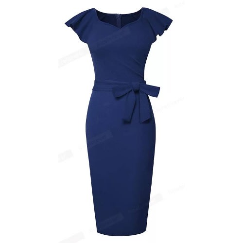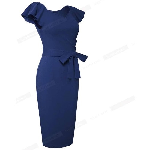 Buy Flutter Sleeve Belt Pencil Dress- Blue in Nigeria