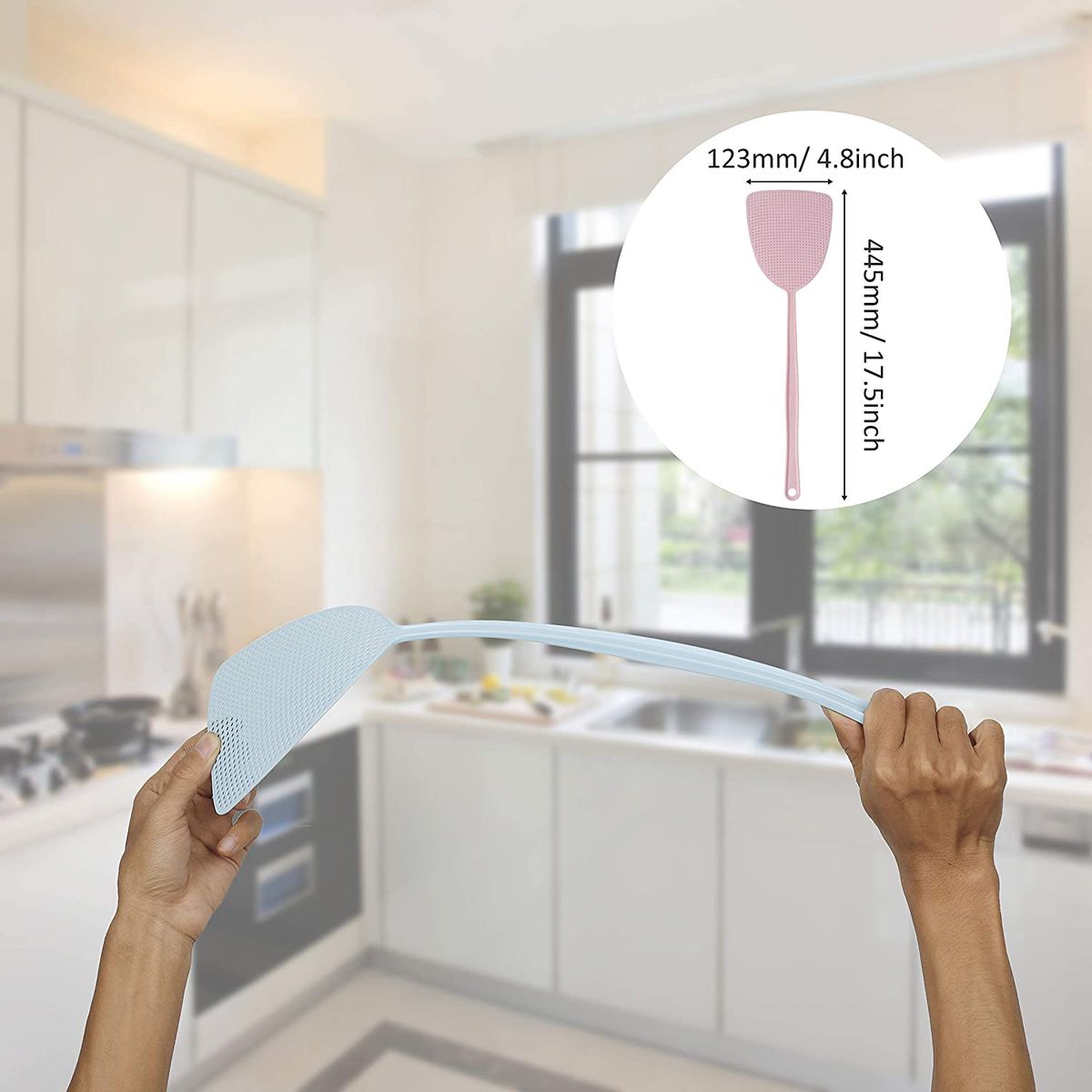 The following is the detailed introduction about our products: Long Handle Design: Fly ter is approx. 17 x 4.7 inches/ 44.5 x 12 cm (L*W), long enough handle design proper to use even though in a long distance, lightweight and durable design that will not scratch or ruin our surfaces.