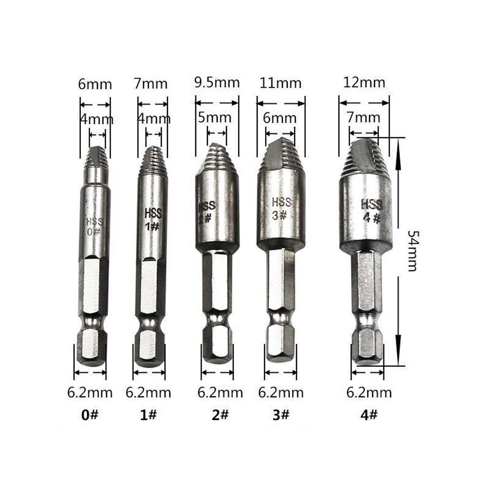 Includes 5 Different Sizes - (0#, 1#, 2#, 3#, 4#) in one screw remover set for most drill, screw or bolt.