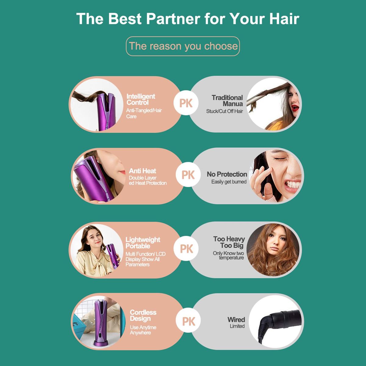 Buy FM-003 Cordless Auto Hair Curler Automatic Curling Iron with Rotate Left and Right 4 Timer Settings Ceramic Barrel Portable Hair Curling Wand for Hair Styling in Nigeria