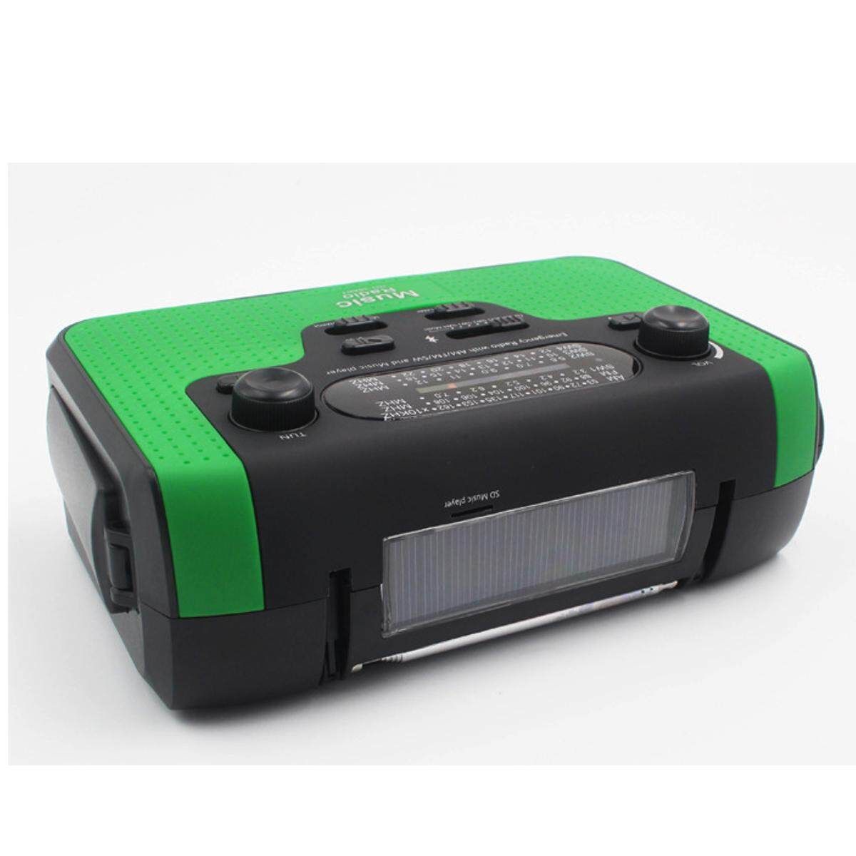 This is a multifunctional high brightness flashlight radio. It can be charged your phone by hand crank and solor, any time can keep enough . Built-in high-sensitivity FM/AM/SW radio, you can listen to radio programs wherever. Also the Bluetooth and TF card playing music features makes it suitable for family life, camping, travel, outdoor activities, etc