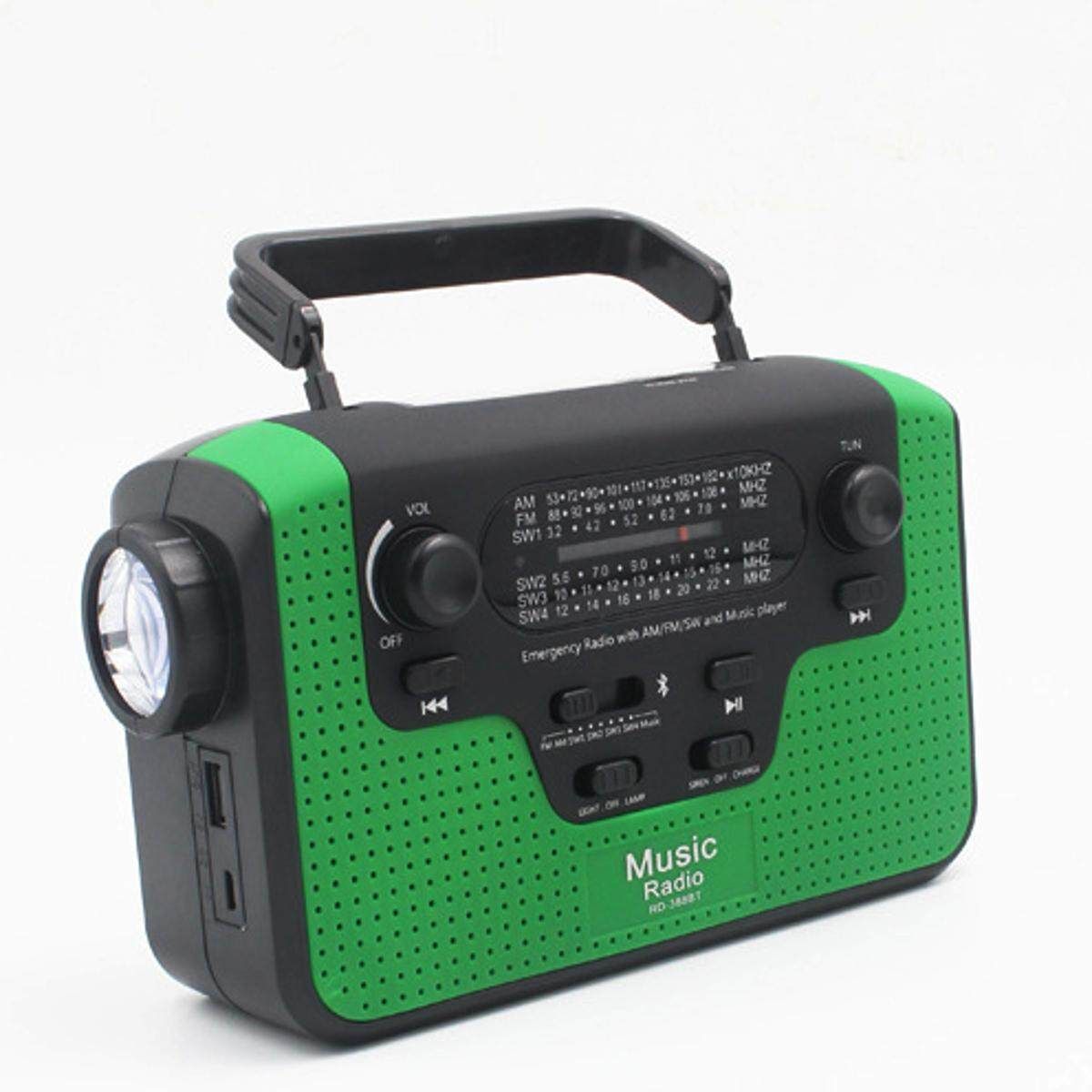 1.Hand Crank Cellphone Charger + FM/AM/SW (1,2,3,4)Radio + Bluetooth Speaker+ Flashlight + Reading Lamp