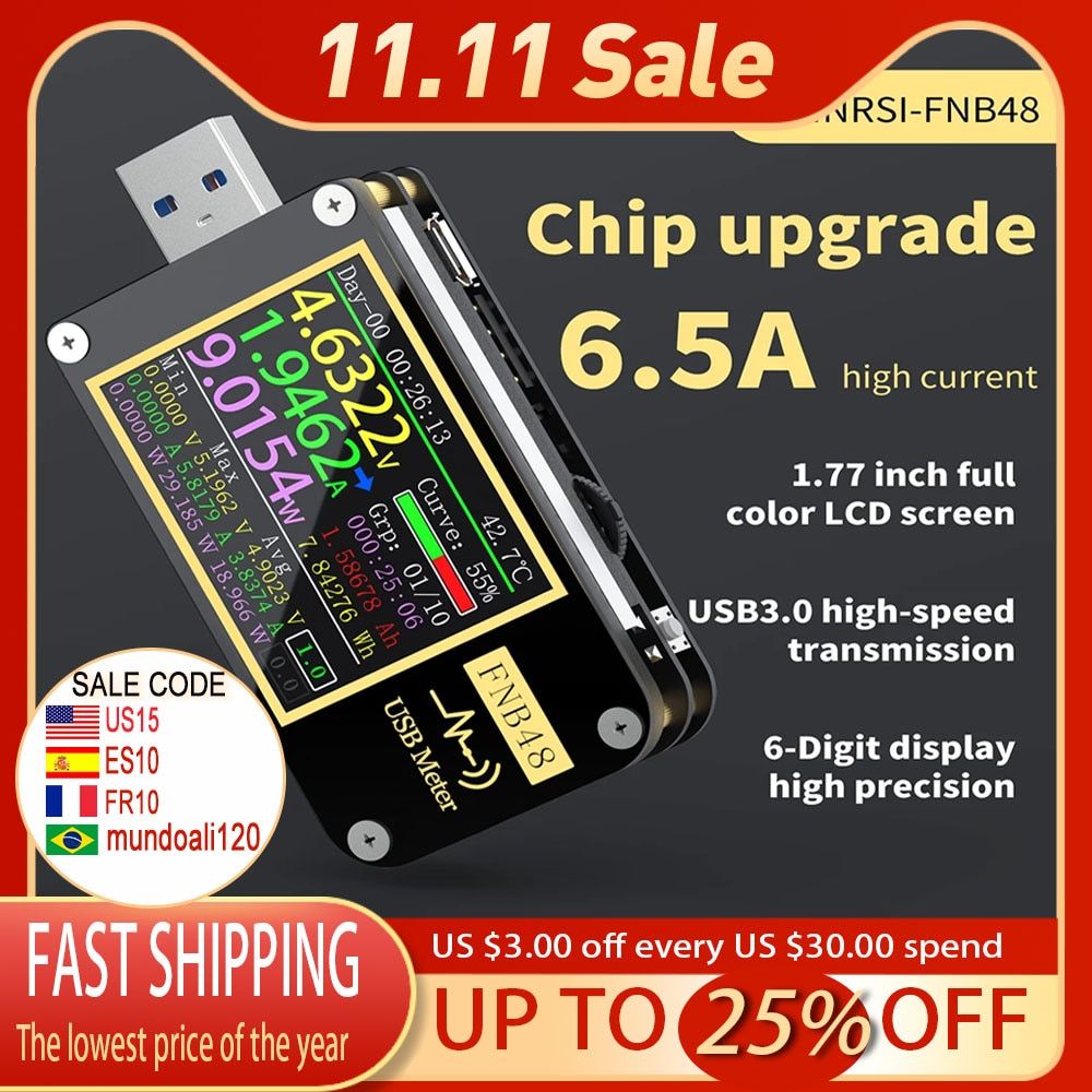 1X FNB48 USB Voltage Current Tester Meter Multifunctional Fast Charging Power Detection Analyzer Testing Tools