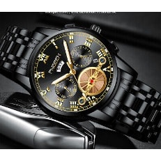 Buy Fngeen Waterproof Calendar Luminous Stainless Steel Watch - Black in Nigeria