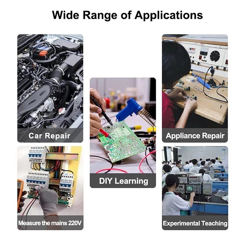 Wide Applications: This oscilloscope is suitable for car repairing, DIY, home appliance maintenance, experiment teaching, etc.