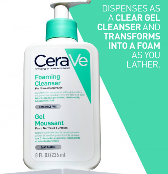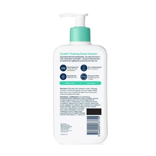 CeraVe & reg; Foaming Cleanser & rsquo;s gentle foaming gel action, deeply cleanses and refreshes skin while removing excess oils, dirt, and makeup without disrupting the protective skin barrier.