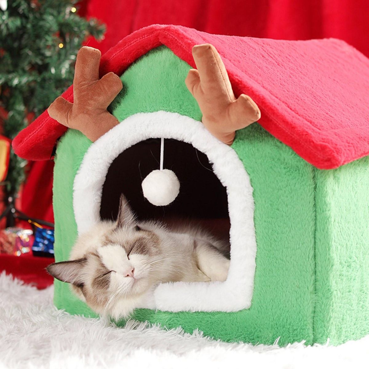Buy Fodable Indoor Pet House,Cat Bed Removable and washable Sleeping Bed With Plush Cushion Best Supplies, Pet Tent-Soft Bed Warm Cave Nest for Dog & Cat(for small animals within 5kg) in Nigeria