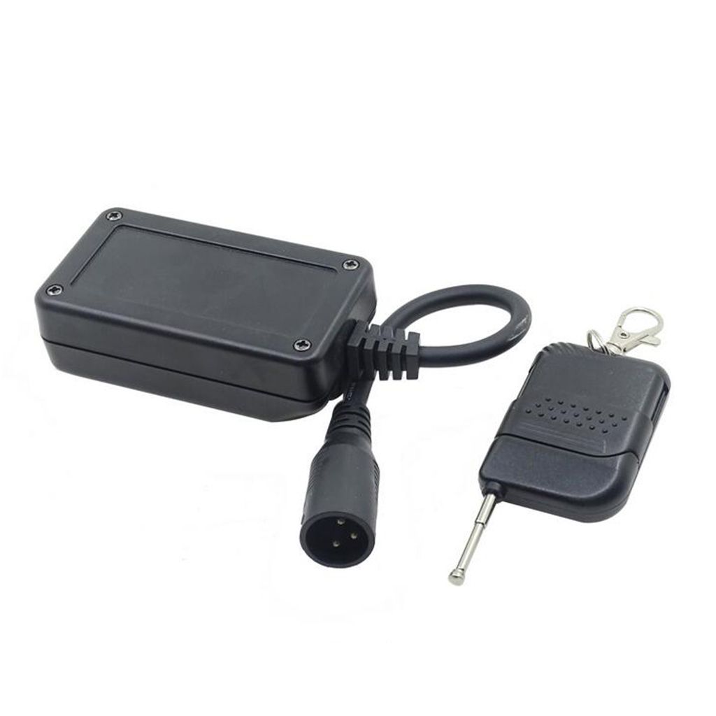 Black Wirless Remote Control use for 400W 900W Mini Fog MachineUniversal 3 Pins XLR Interface, Suitable for all 3 Pins XLR Interface LED Lights, Laser Lights, Fog Machine, Stage Equipment, etcFor 400w 900w 1500w fog machine wireless control for machineMaterial: PlasticRemote Control Distance: 30m/11.81inch