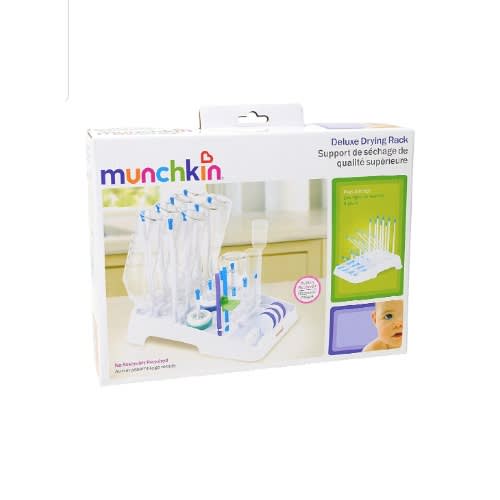 It holds bottles, nipples, cups, valves, straws and a bottle brush. The built-in reservoir keeps countertops dry so they won't breed germs. The patented design folds flat so you can store it away in a snap. It can hold many items upright for a quick dry. This rounded tip prevents scratching.
