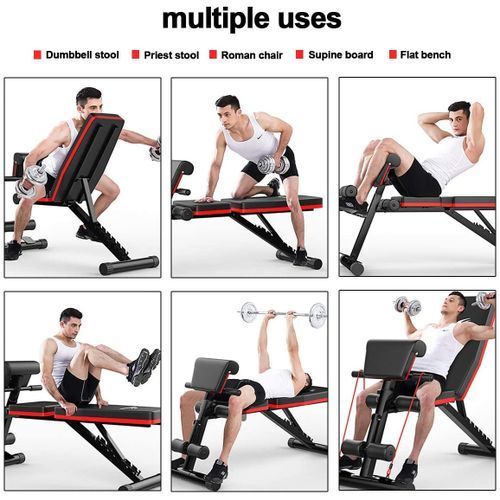 Adjustable sit up bench: 4 in 1 Multi workout bench can provide you a variety of exercise, perfect for biceps curls bench press, shoulder press, ab muscle training, leg exercise and more. It's a great device for a full- body workout at home or at gym•√ (Wide range of use): 350lb affordability, 143Lx50wx(50 - 112HNet : 13kg. Easy to storage, Easy Adjustment of back rest and seat. Can be used at home, gym , office. Help you with all - around muscle training sporting Equipment•√ (Safe to use): solid and durable tubular construction, Non-slip plastic at the bottom which provides you more stability and safety for your exercise.Adjustable sit up bench: 4 in 1 Multi workout bench can provide you a variety of exercise, perfect for biceps curls bench press, shoulder press, ab muscle training, leg exercise and more. It's a great device for a full- body workout at home or at gym•√ (Wide range of use): 350lb affordability, 143Lx50wx(50 - 112HNet : 13kg. Easy to storage, Easy Adjustment of back rest and seat. Can be used at home, gym , office. Help you with all - around muscle training sporting Equipment•√ (Safe to use): solid and durable tubular construction, Non-slip plastic at the bottom which provides you more stability and safety for your exercise.