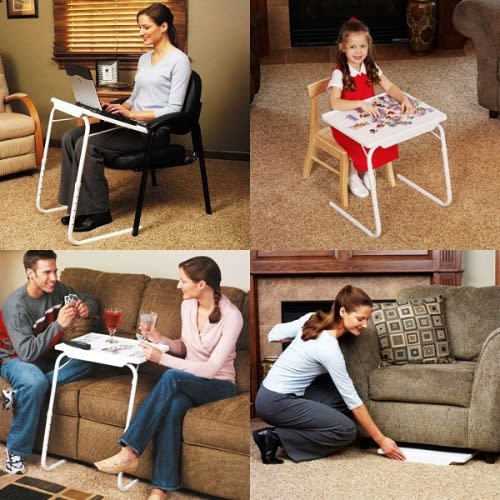 Adjust, Tilt, Split You can easily adjust the angle and height of this laptop desk cart so that it can be perfect fit for all members of the family The desktop can swivel 360 & deg; to offer a versatile range of motion and the screws under the desktop can be adjusted to keep the 2 splitting top panels aligned if needed