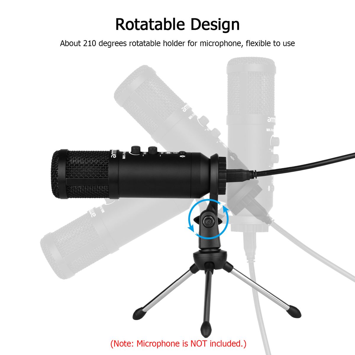 About 210 degrees rotatable holder for microphone, flexible to use.