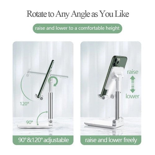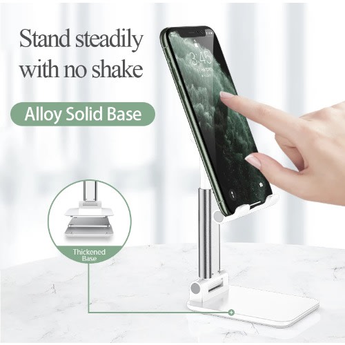 1.cell phone stand is compatible with all 4-8 inches smartphones and most tablets with cases, like iPhone 11 Pro XS Max XR x 6 6S 7 8 Plus, Galaxy Samsung S10+ S10e S10 S9+ S9 S8+ S8 S7 Note 10 9 8, Google Pixel, ipad air 2, Kindle, Ebook Reader etc.2.The phone stand holder for desk height can be adjusted (7"-10.9"), the angle can be adjusted from 0 to 45 & deg;by hand. You can adjust the stand to suit the device, protect your neck and back from ache3. More angles adjustable, Non-slip silicone pads, more stable, Three-bearing adjustment, Suitable for tablets and mobile phones, Foldable storage, and more space-saving