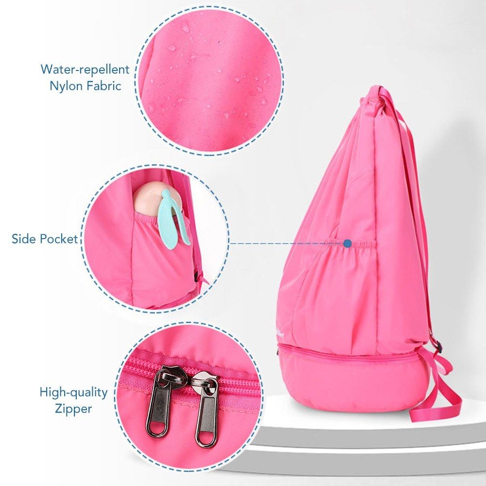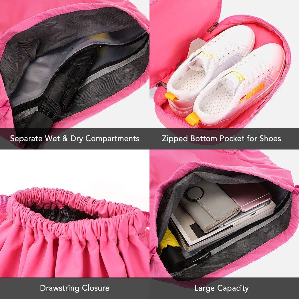 Foldable backpack with separate wet and dry compartments and shoe compartment, very convenient for traveling and gym fitness.