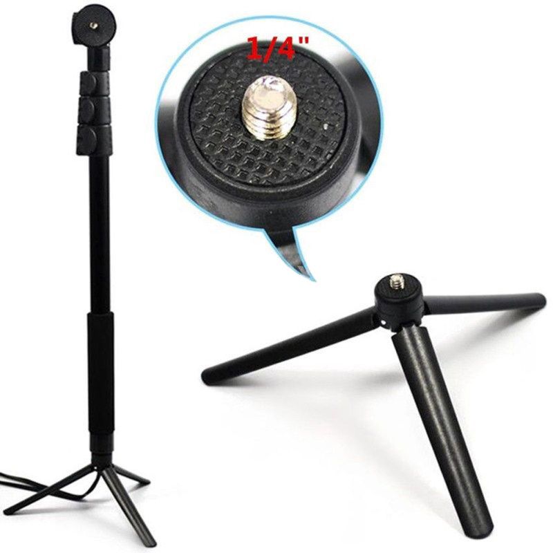 With 1/4"" universal screw, any type of compact and action sports camera can be fixed to the mini tripod.