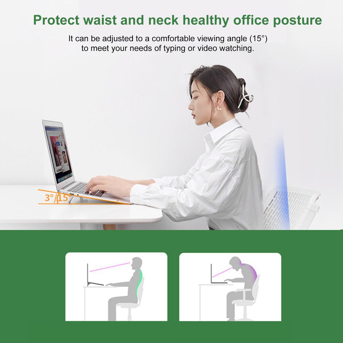 Features:This laptop stand is small and exquisite, does not block the air outlet, prevents your notebook from overheating.