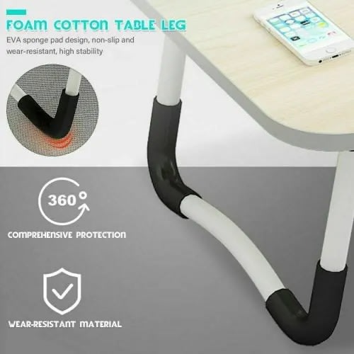 Due the glossy surface it is very easy to clean and maintain, the metals does not rust and it easy to assemble, no tools required This comfortable, adjustable, foldable reading study laptop table and chair is made of fine formica/ivory brown wood and well fitted metallic stands that can be adjusted to any height to suit the comfort of the user, both the chair and the table can be folded into a flat and easy to carry shape,