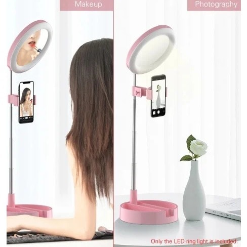 Foldable Led Ringlight With Makeup Mirror And Phone Holder