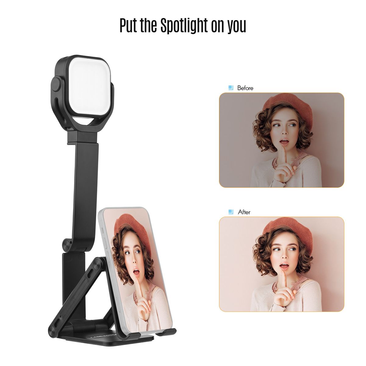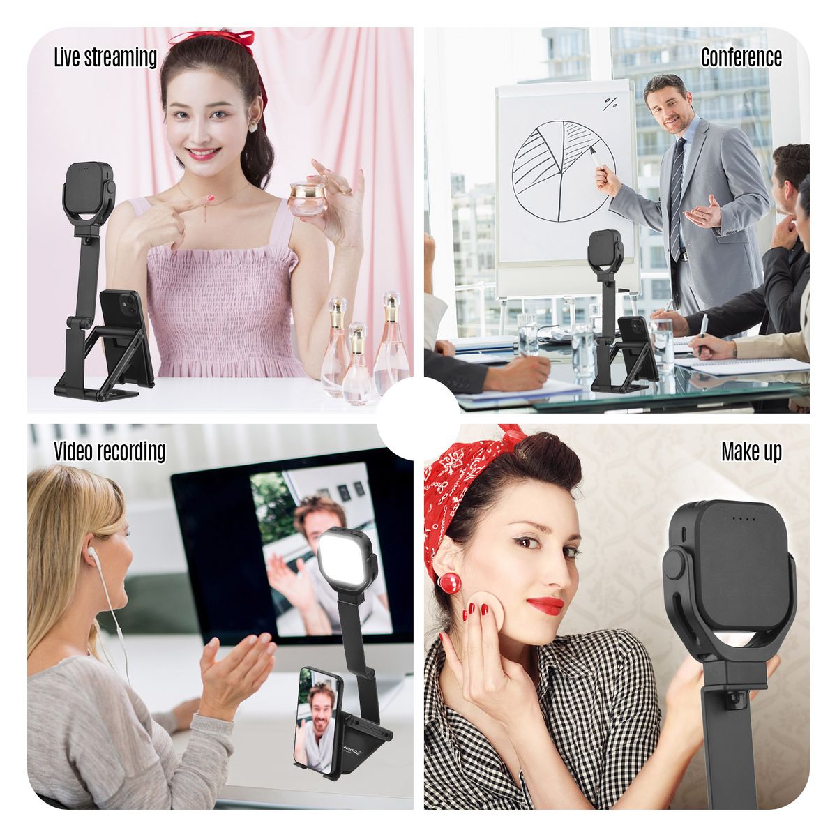 Our phone holder with light is fit for photography, video recording, live streaming, conference, makeup and reading.