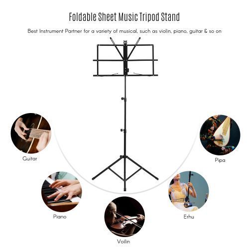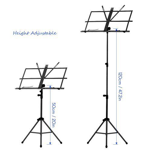 This compact music stand holds music sheets and scores in a comfortable position for the performer to easily read. The music holder with spring loaded keeping your sheets in order.