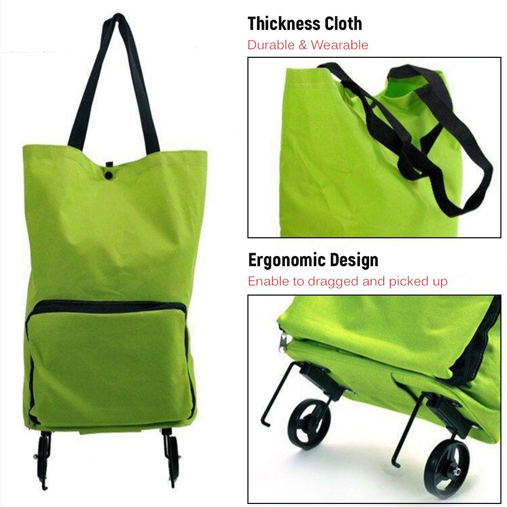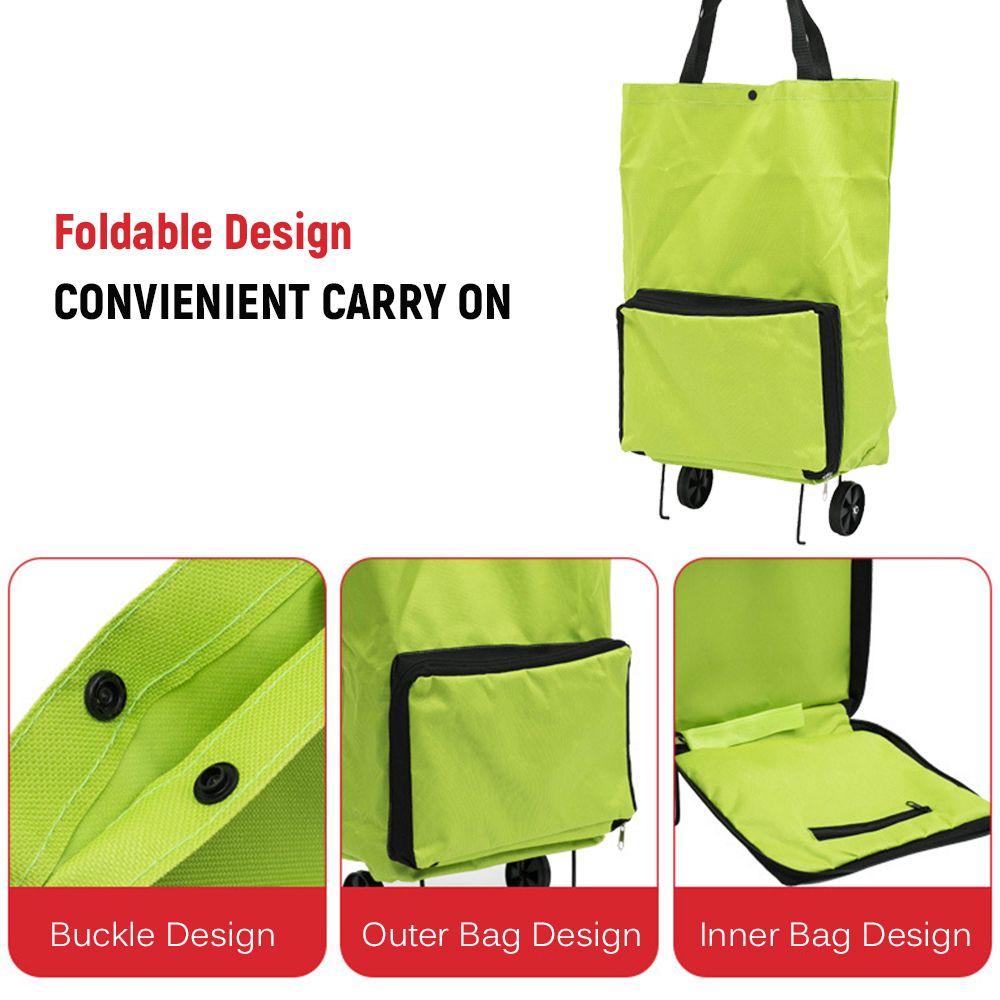 Foldable Shopping Trolley Bag with Wheels Collapsible Shopping Cart Reusable Foldable Grocery Bags Travel Bag Green