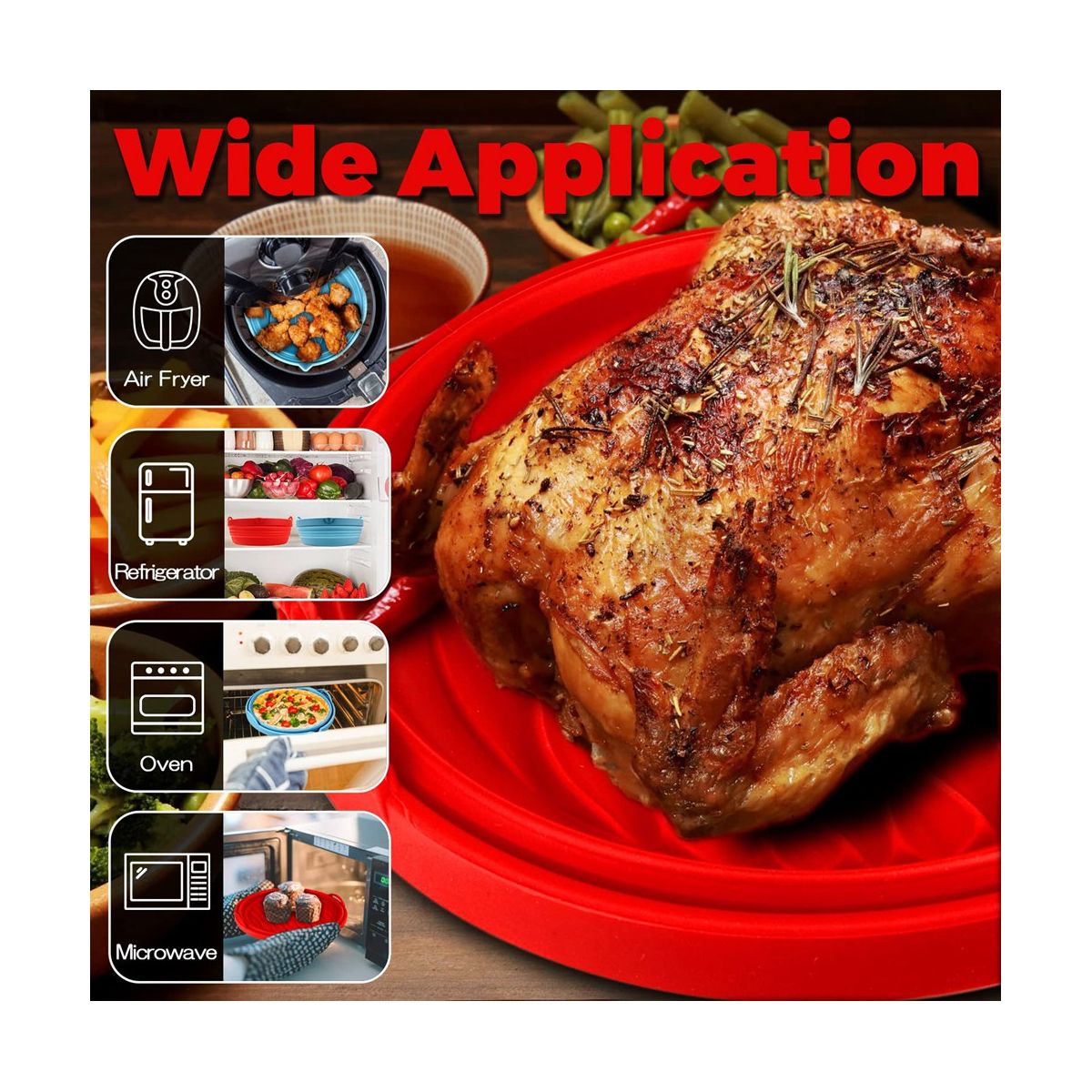 Wide Applicaton: The silicone air fryer liners is an indispensable kitchen accessory in daily life. It is a great accessory for baking or preserving food in the kitchen air fryer. Perfect for air fryers, ovens, microwaves, refrigerators, steamers or dinner plates. It can also be used for home baking, summer parties, camping, barbecues, etc.