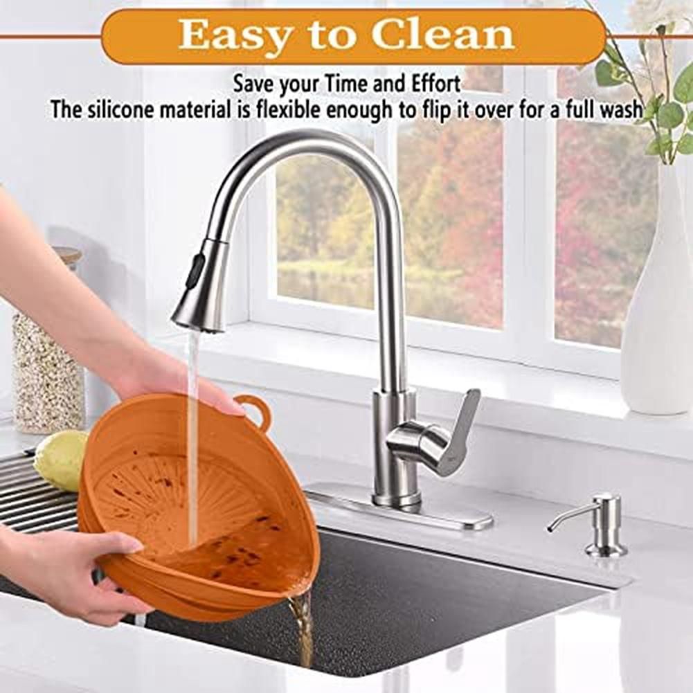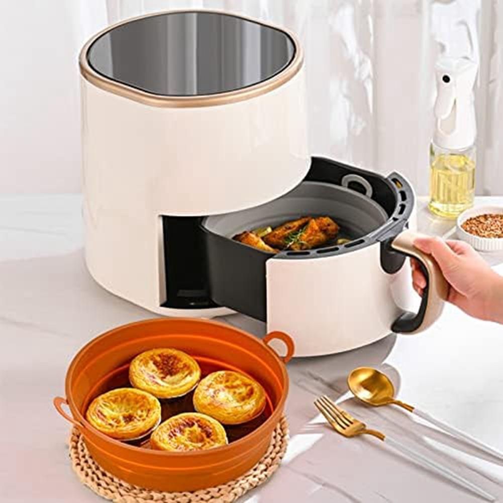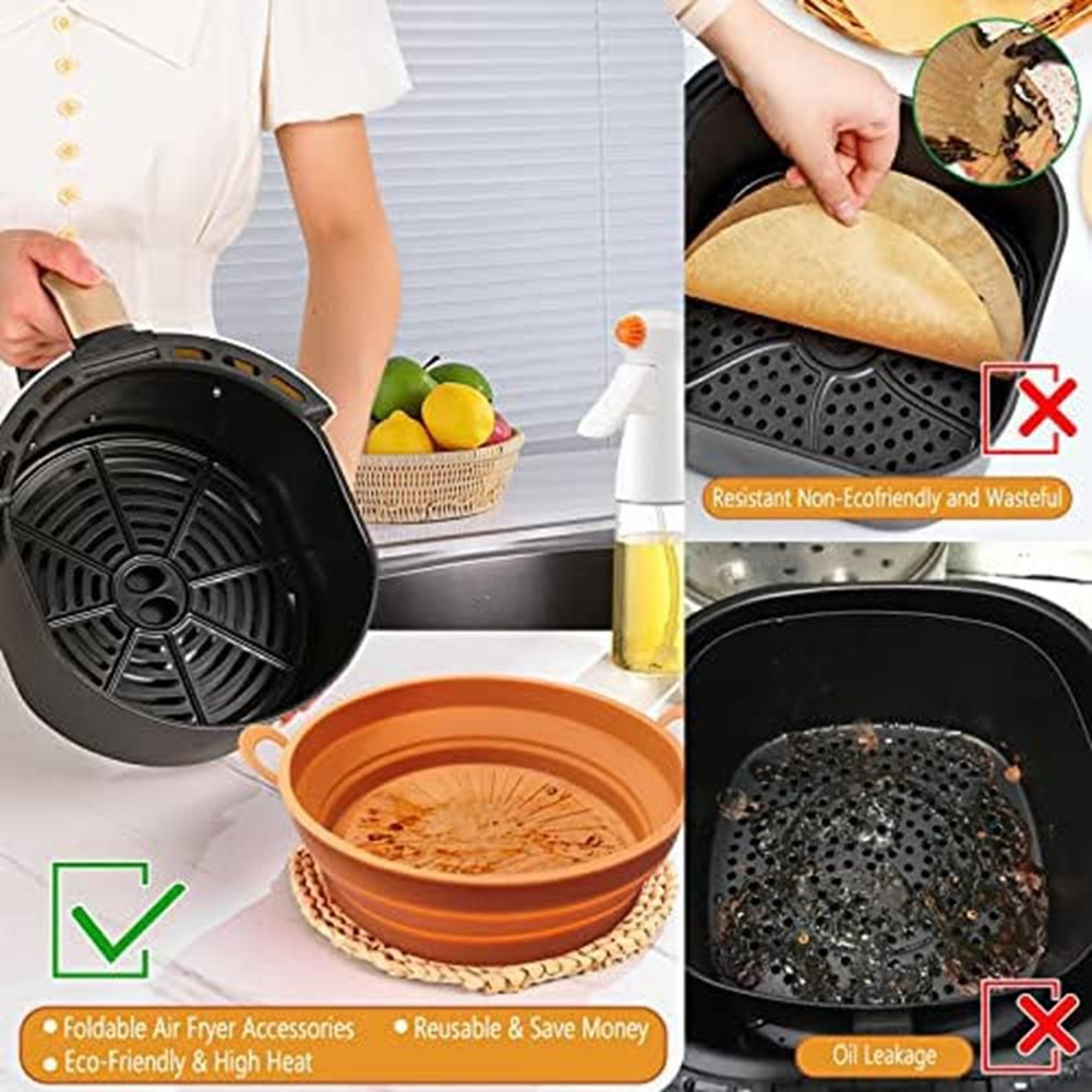 for 5QT or Bigger - 85inch Silicone Liners which made of premium food grade silicone material Non-stick non-toxic free can handle up to 464°F240°C for air frying steaming and oven baking So that silicone basket perfect for all 5QT or bigger air fryers also be used in oven or pressure cooker