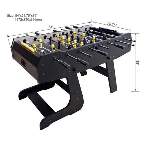 5 feet Air Hockey table for leisure. It uses an electronic scoreboard, and suitable for two players. It's a great spacer saver as well; the table is foldable after use.