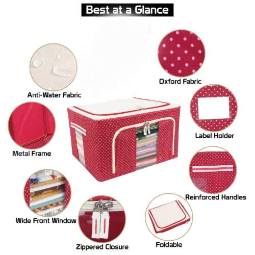 Clothing Organizer Fabric Foldable Storage Box With Steel Frame For Clothes Bed Sheets Blanket Home Office Storage