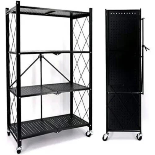 Buy Foldable Storage Rack With Wheels - 4 Tier - Black in Nigeria