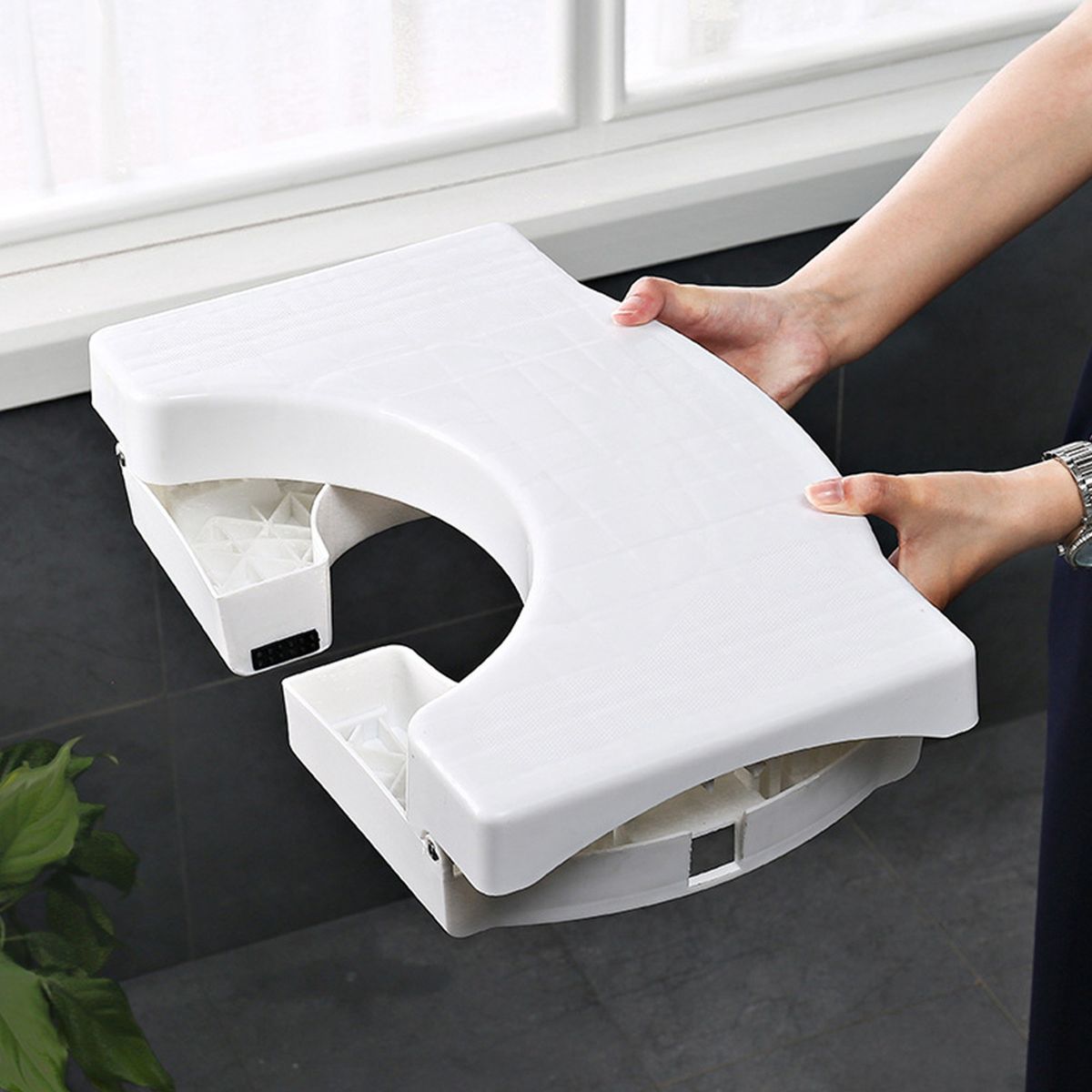 [Foldable]Toilet stool with foldable design for storage can directly hide under the toilet save space.