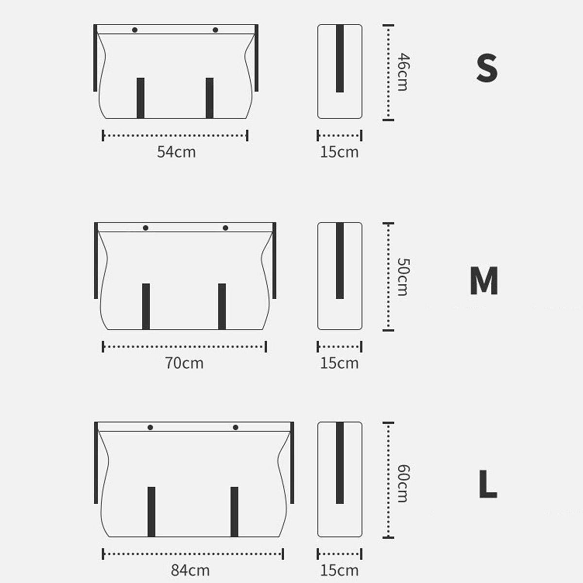 Size: S - 54x15x46cm/21.26x5.91x18.11inch, 35LM - 70x15x50cm/27.56x5.91x19.69inch, 50LL - 84x15x60cm/33.07x5.91x23.62inch, 73L