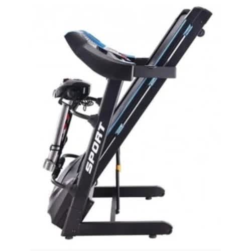 FeaturesIt has MP3 connector with a loud in built speaker For music while running on the treadmill.It is an electric fat burner treadmill.It has a tummy trimmer, twister and DumbbellIt works with a body massaging machineIt can be folded after use in order to occupy less spaceComputer display: Calories,time,speed,heart monitorHigh-idelity stereo acoustics Incline:0-10%Controler: Noiseless PWM controlerUser & rsquo;s Weight:120kg Max.Very good for indoors workout.