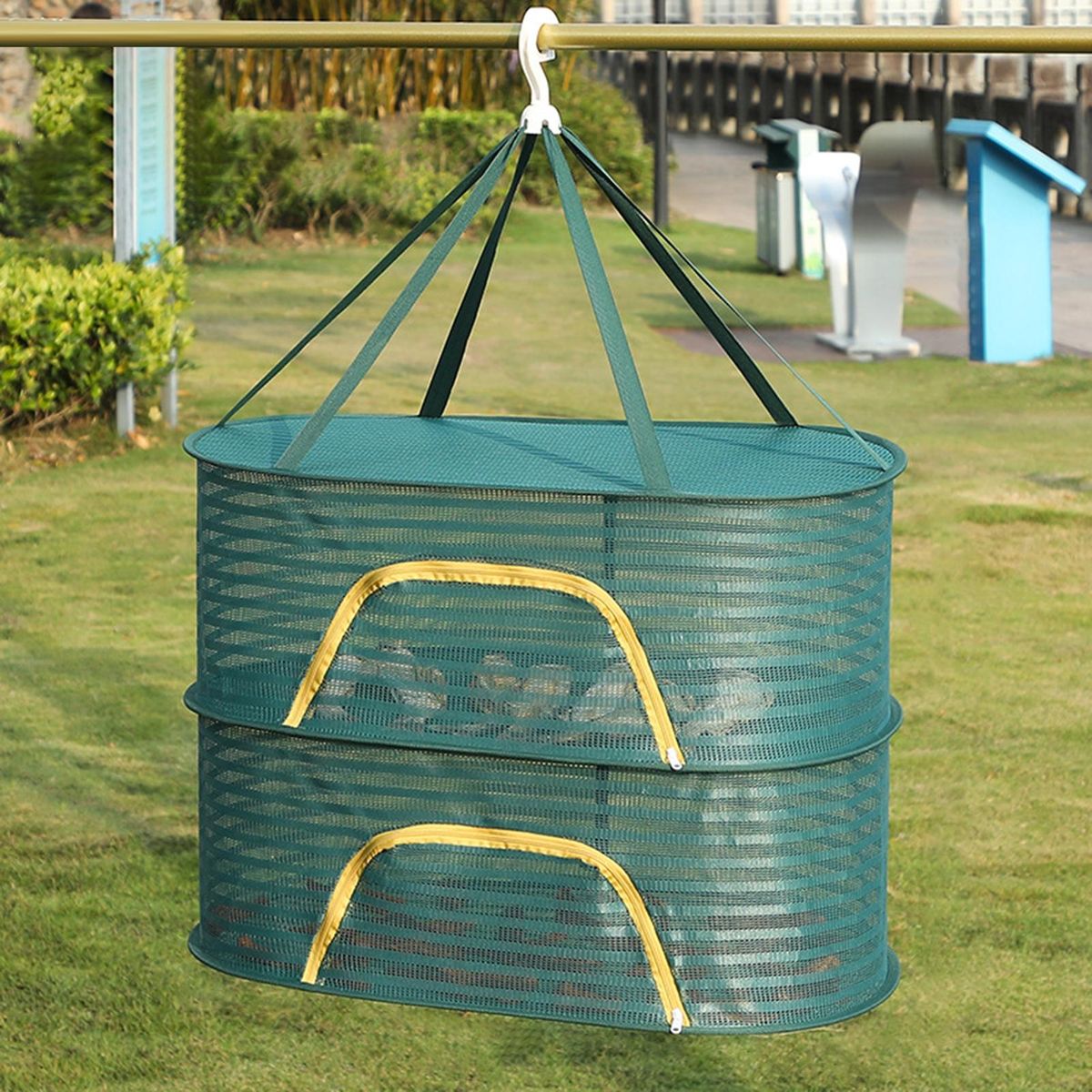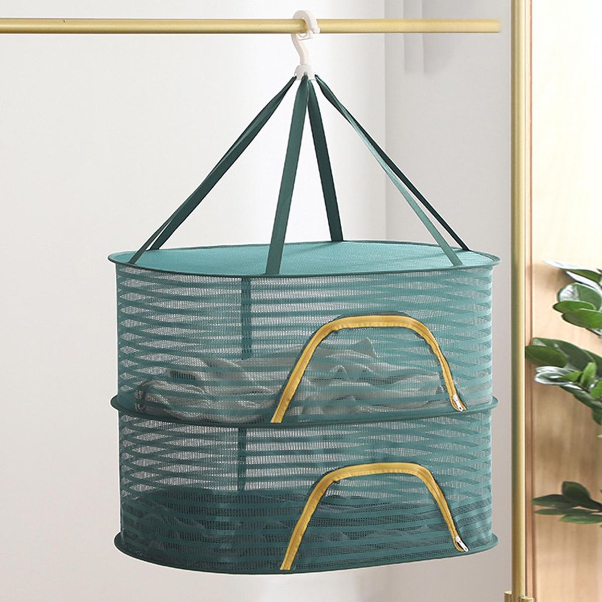 Designed with convenience in mind, the sturdy wire frame of our drying basket can be easily folded flat for compact storage when not in use. the u-shaped zipper design provides a wider and higher opening, making it incredibly convenient to place items inside or retrieve them from the rack. this innovative design also safeguards your herbs and clothes from pollution as well as potential damage caused by wind, birds, or flies.