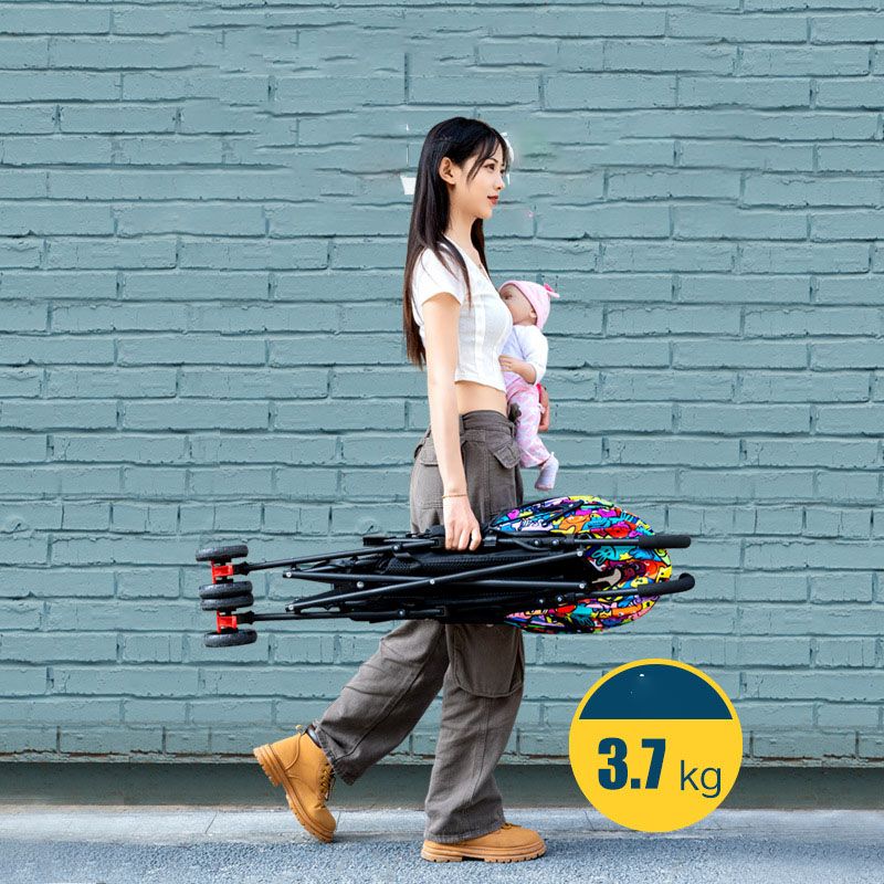 stroller can allow the baby to either sit or lie down. its foldable simple and it has umbrella to protect the child from sun or rainfall. its fun and colorful journey of personality stroller. it only weighs about 3,7kg Its universal for all seasons, warm in winter, four section sunshade large umbrella shed. adjustable pedal angle, five point seat belt.