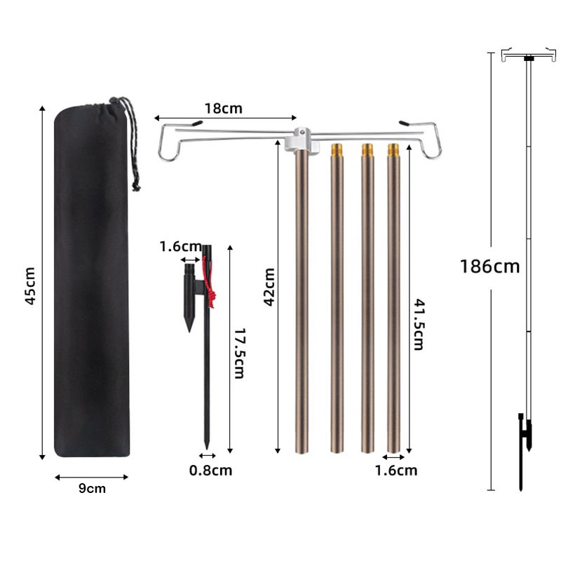 Double bottom pegs to easily insert and fix the pole into the lawn.