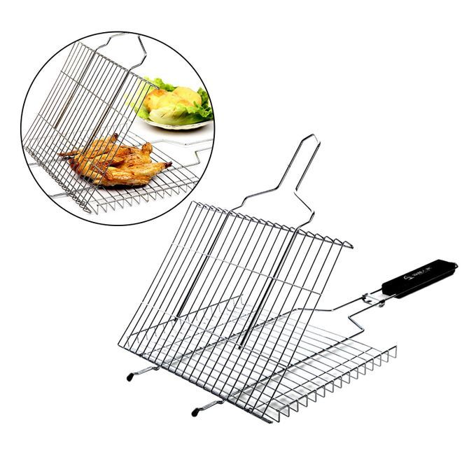 Lockable grill grate locks foods in place and enable easy flipping of grilled foods. It's for grilling burgers, steaks, seafood, vegetable, fish, meat, shrimp and other delicate foods.