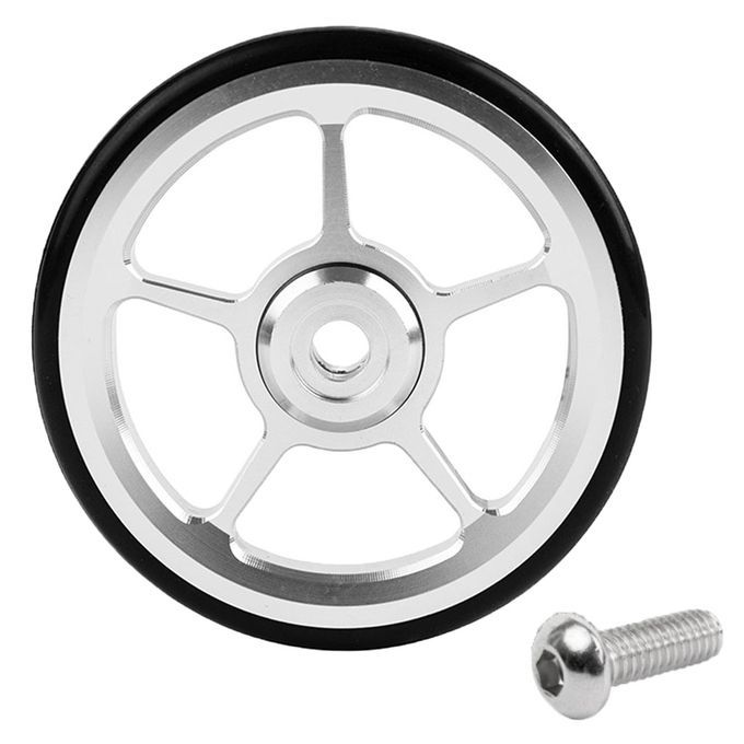 This folding bike mudguard mounted easywheel EZ wheels rollers for and other folding bikes.