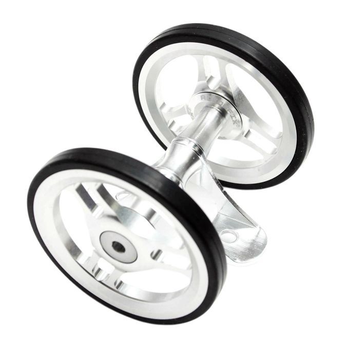 This folding bike mudguard mounted easywheel EZ wheels rollers for Brompton and other folding bikes.